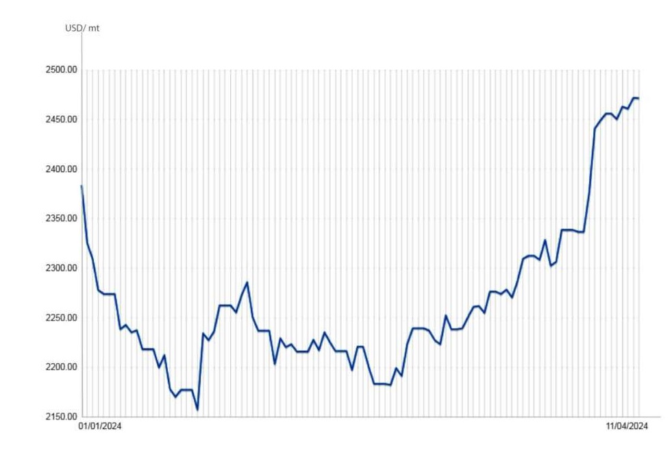 Cùng với đó vào đầu năm 2024, giá nhôm liên tục tăng cao do lo ngại về nguồn cung thắt chặt sau khi các thương nhân đánh giá rủi ro về các biện pháp trừng phạt tiềm tàng của EU đối với kim loại từ Nga – một trong những nhà cung cấp lớn nhất thế giới. Đầu năm 2024 này, người mua châu Âu và Mỹ sẽ tranh giành quyết liệt nguồn nhôm tại Trung Đông nếu EU cấm nhập khẩu kim loại nhôm từ Nga trong những tháng tới. Việc châu Âu cấm nhập khẩu nhôm Nga có thể đẩy giá của kim loại này lên mức cao ngất ngưởng, dễ dẫn đến cuộc khủng hoảng nghiêm trọng đối với nhôm giống năm 2018.
